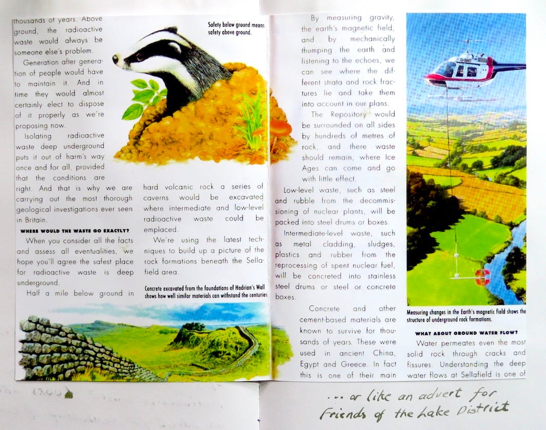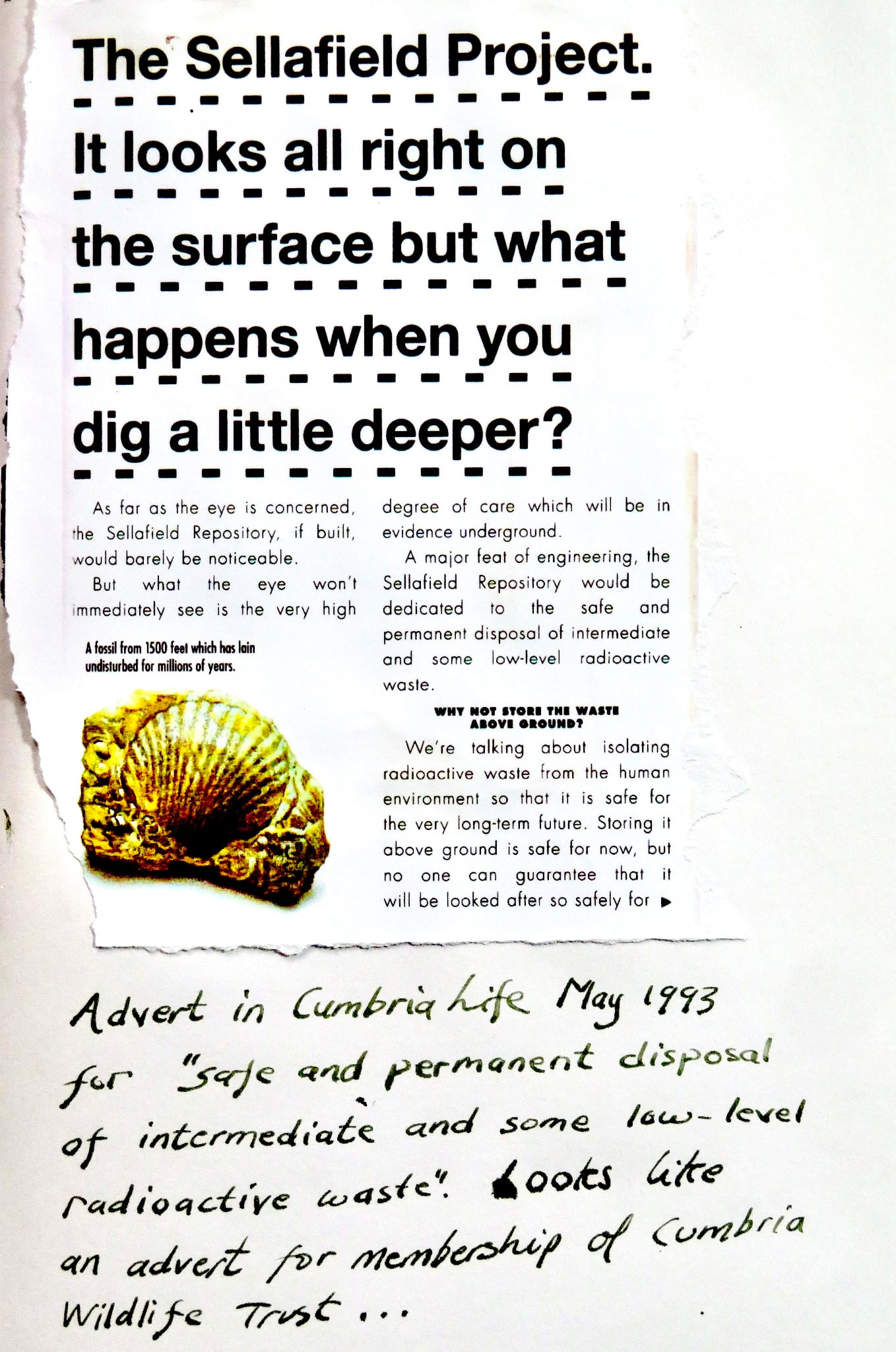 In 1993 there was a multiple page advert in the lifestyle magazine Cumbria Life: “The Sellafield Project. It looks all right on the surface but what happens when you dig a little deeper”