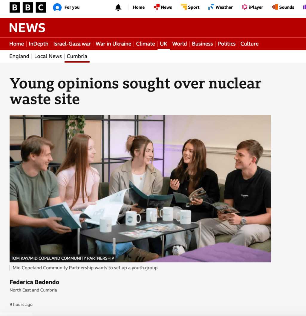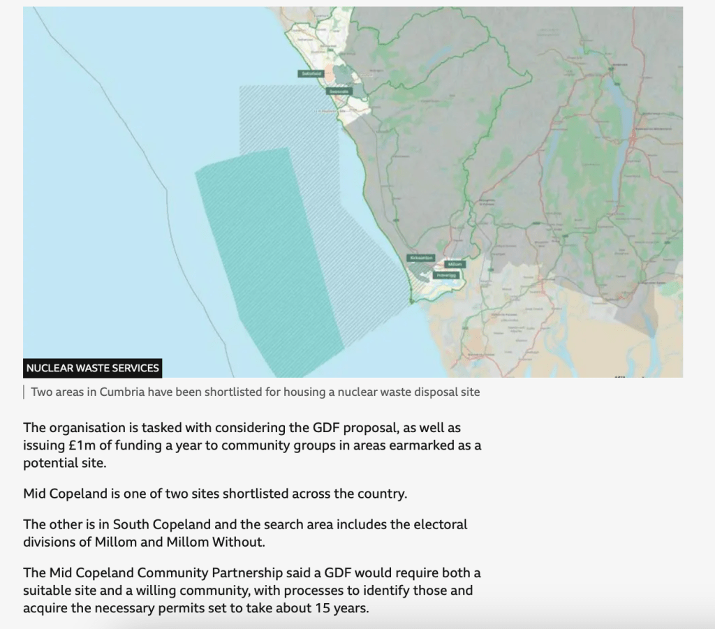 note: The nuclear industry are only asking those youths being bribed – the rest of Cumbrian youth are now excluded from “having a say.” Under the new rules only those being bribed have a say despite all of Cumbria and our neighbours including Scotland and the Isle of Man being impacted by the biggest experimental development ever in the UK