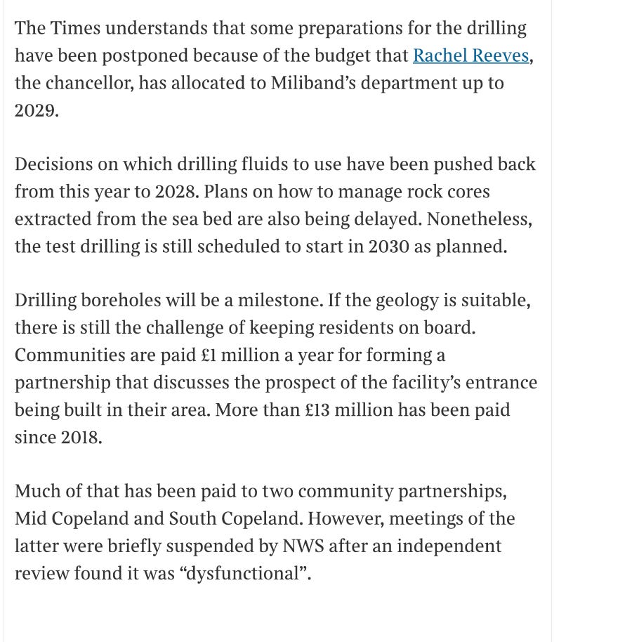 What the Sunday Times article does not highlight is that Nuclear Waste Services are being advised (via the Committee on Radioactive Waste Management) on investigative boreholes and deep mining by Mark Kirkbride, the mining engineer who is also the CEO of West Cumbria Mining.