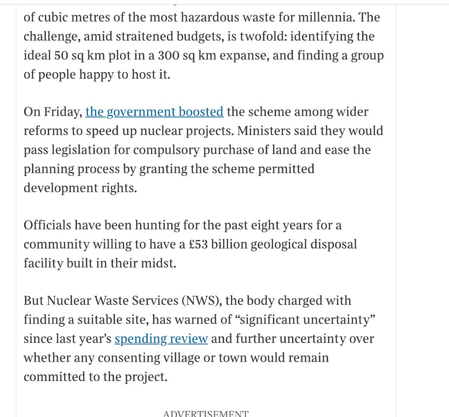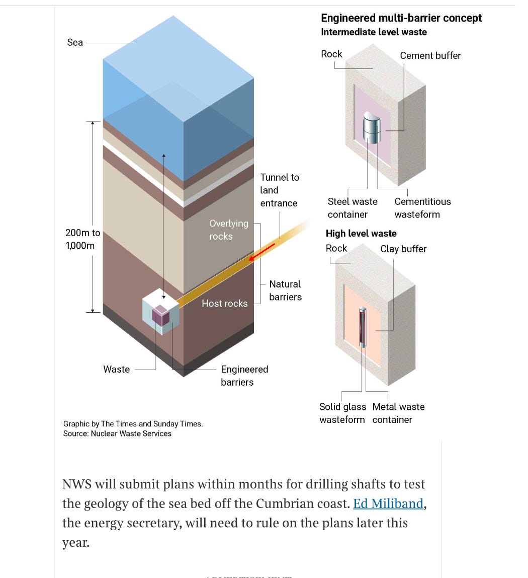 Having failed to bury it under the Lake District multiple times, the latest desperate plan is to bury it in a massive, multi-level sub-sea mine, apparently now 50 sq km and 1000 metres deep, off the Lake District coastline conveniently close to Sellafield.