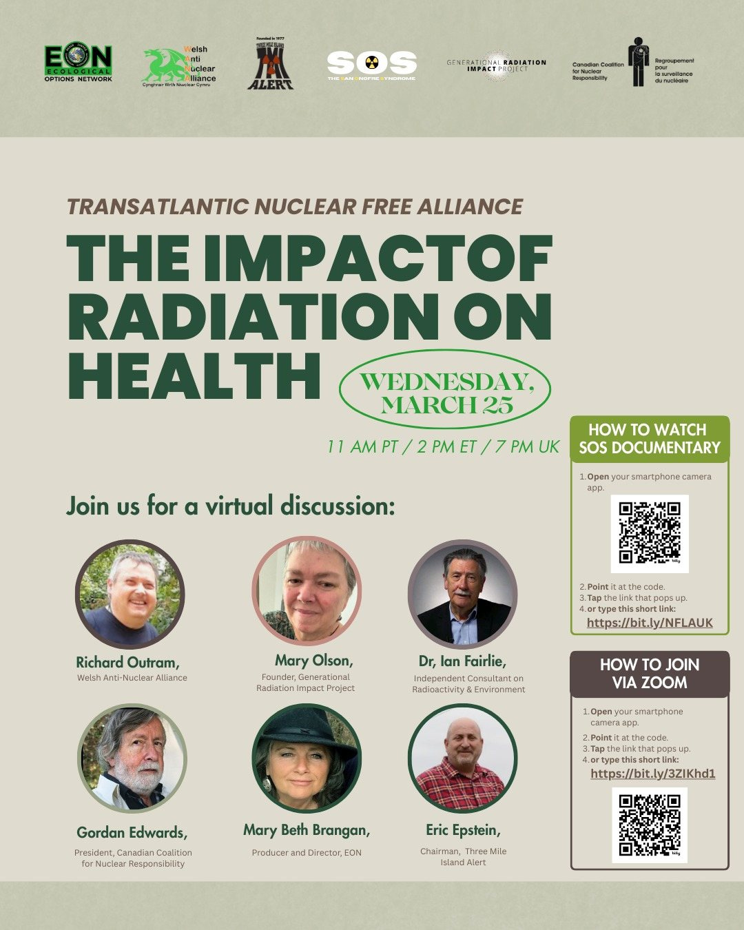 Join the Transatlantic Nuclear Free Alliance (TNFA) webinar on Wednesday, March 25, for a vital conversation on the long-term health impacts of nuclear radiation.